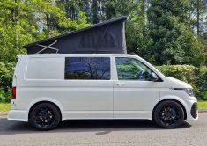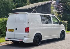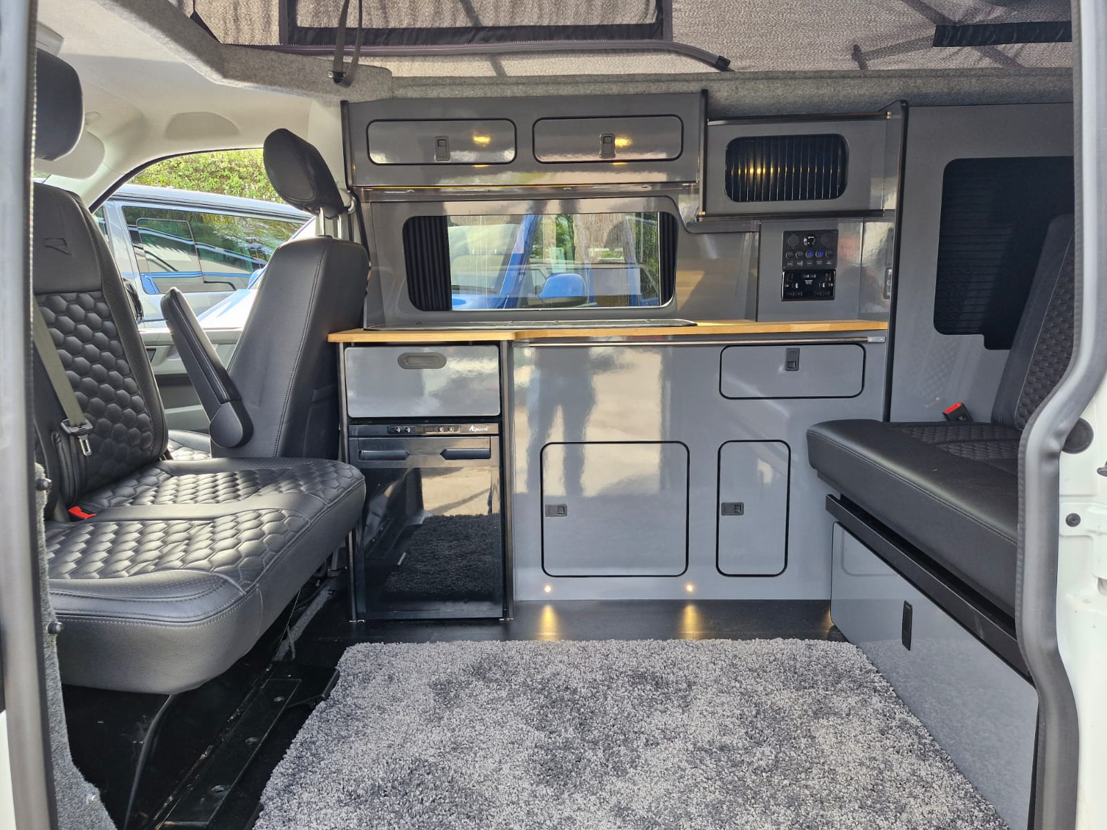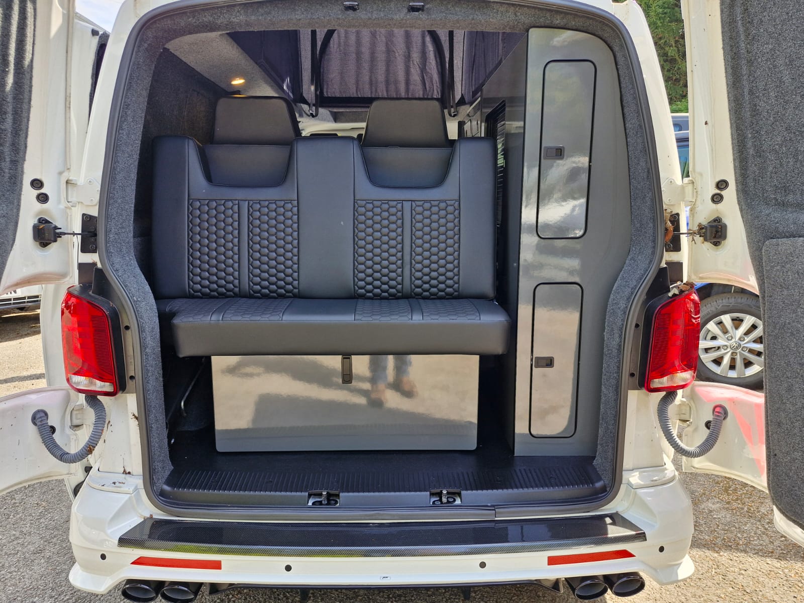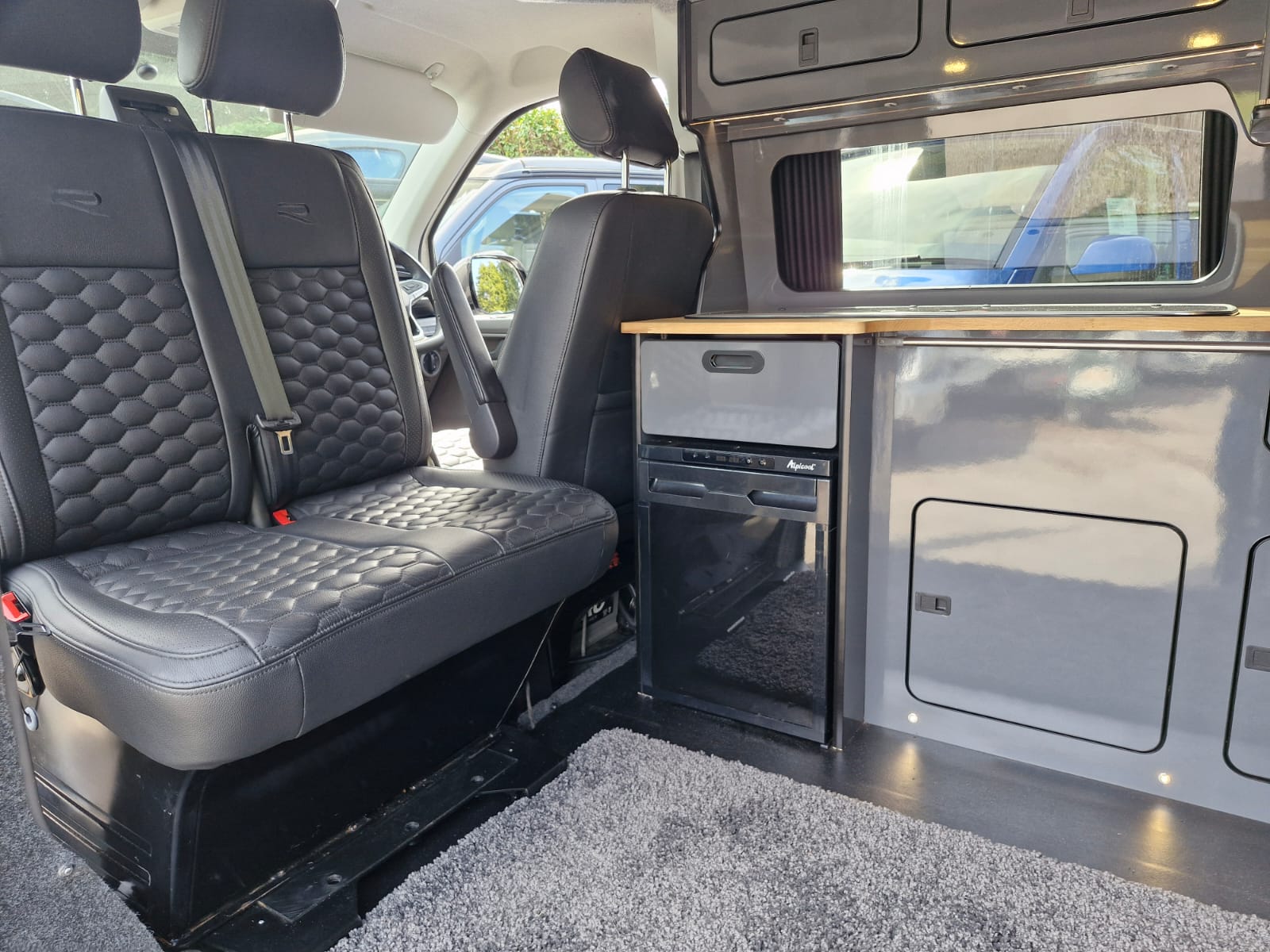 A real looker this stunning campervan has a huge specification including 20” riviera alloys, LED headlamps with smoked glass, lowered suspension, a full ABT bodykit inc. front bumper, rear bumper with splitter, side skirts, Rear Spoiler and carbon fibre covered wing mirrors. Internally you will find the top spec continues with Leather Seats, Air con, Cruise Control, rear parking sensors, VW factory upgraded infotainment system with wireless Apple car play / Android auto,