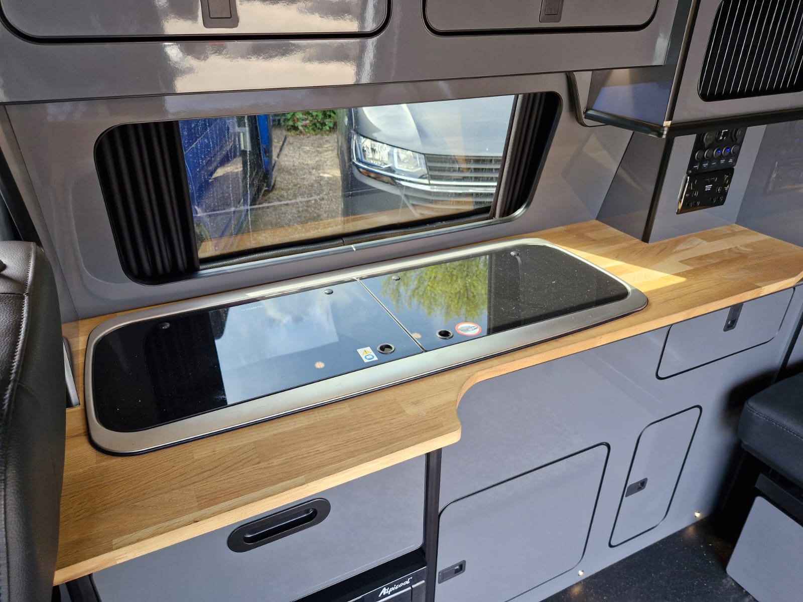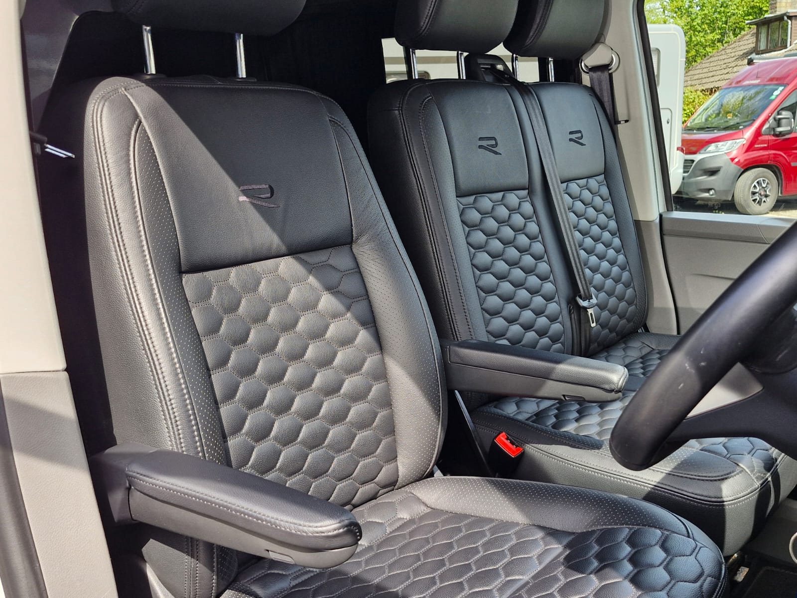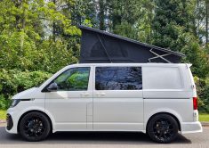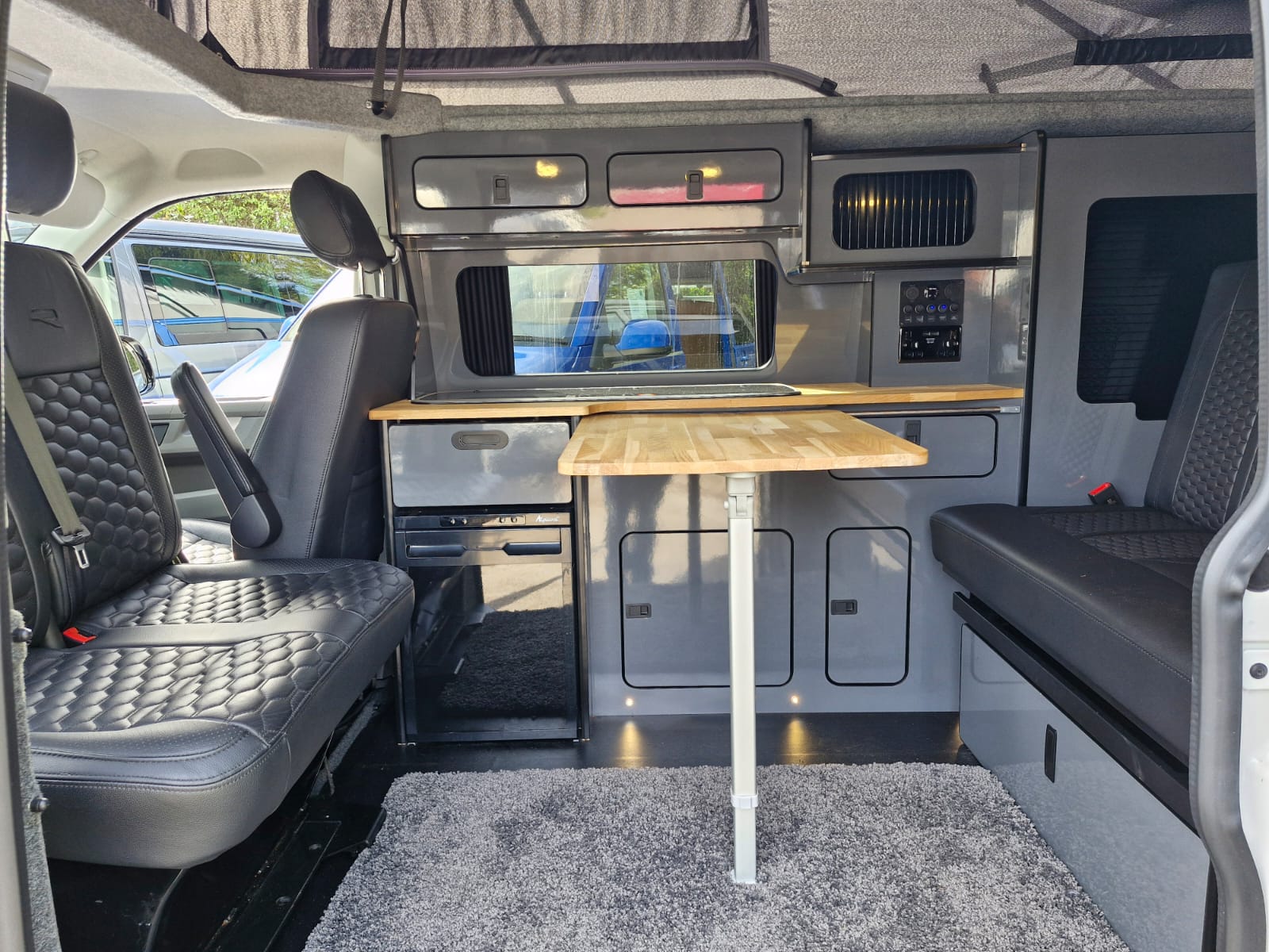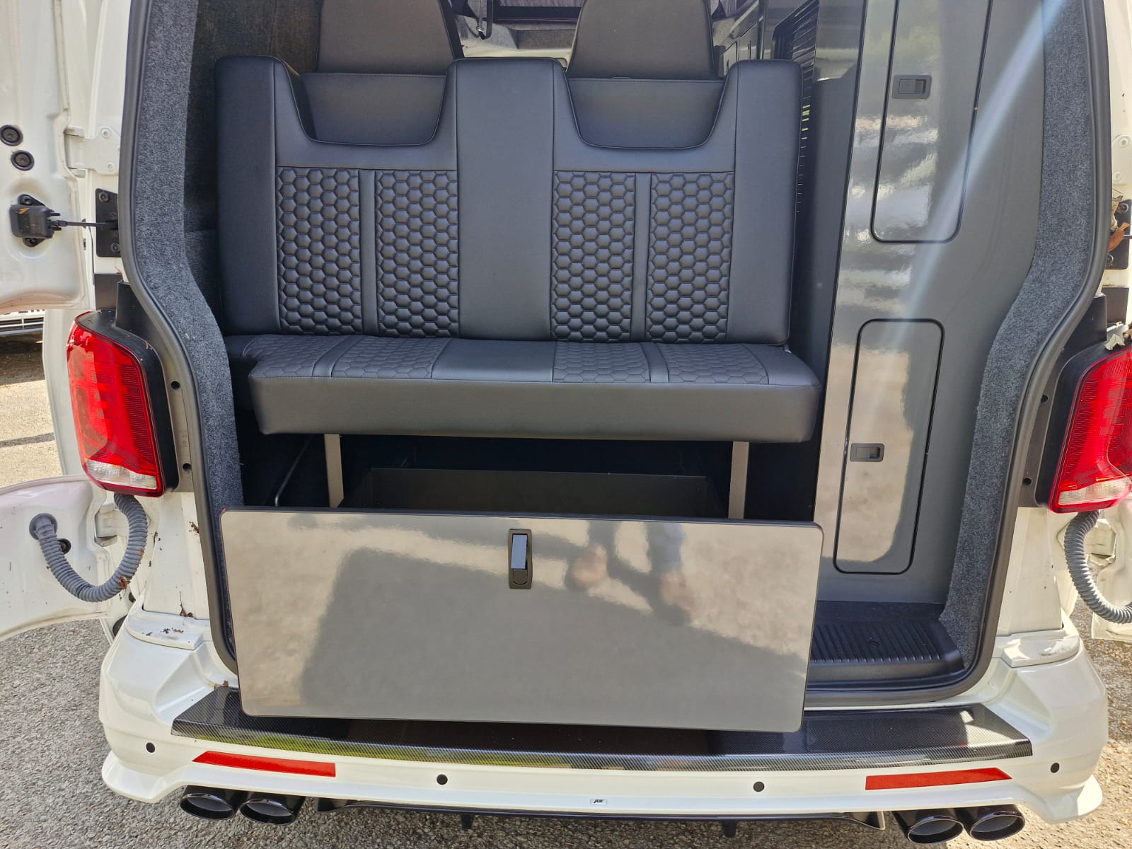 A real looker this stunning campervan has a huge specification including 20” riviera alloys, LED headlamps with smoked glass, lowered suspension, a full ABT bodykit inc. front bumper, rear bumper with splitter, side skirts, Rear Spoiler and carbon fibre covered wing mirrors. Internally you will find the top spec continues with Leather Seats, Air con, Cruise Control, rear parking sensors, VW factory upgraded infotainment system with wireless Apple car play / Android auto,