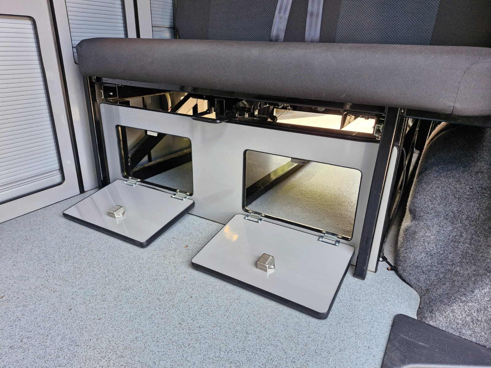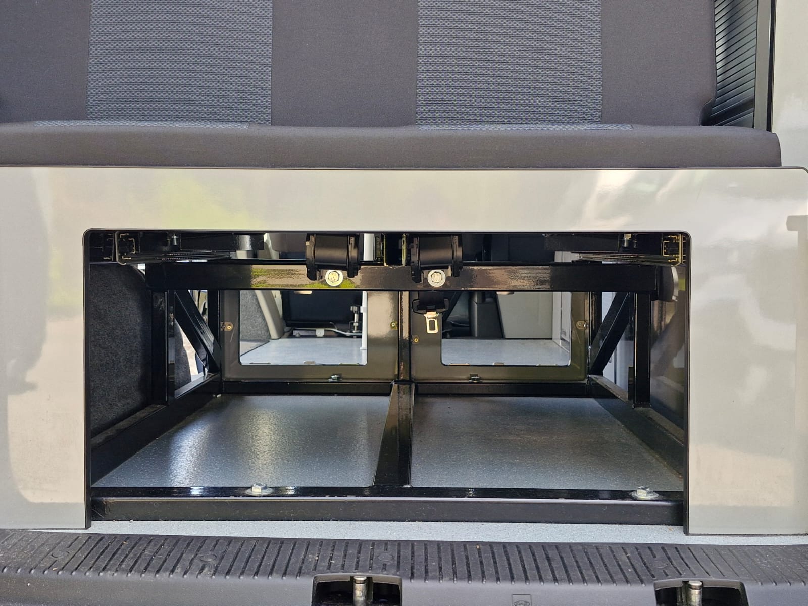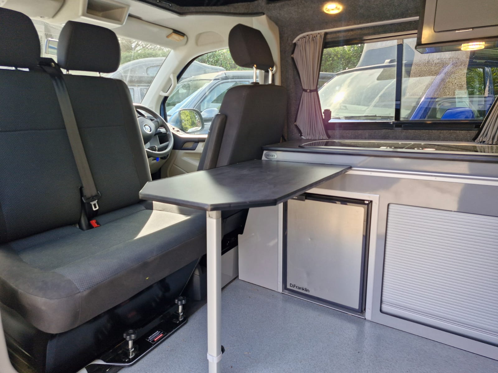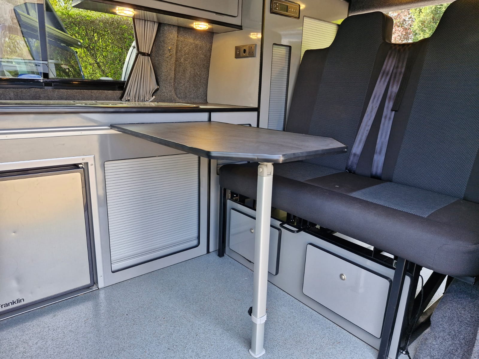 The van has alloy wheels, cab air conditioning, colour coded bumpers and barn doors to the rear where you’ll find the kitchen table stowed neatly.