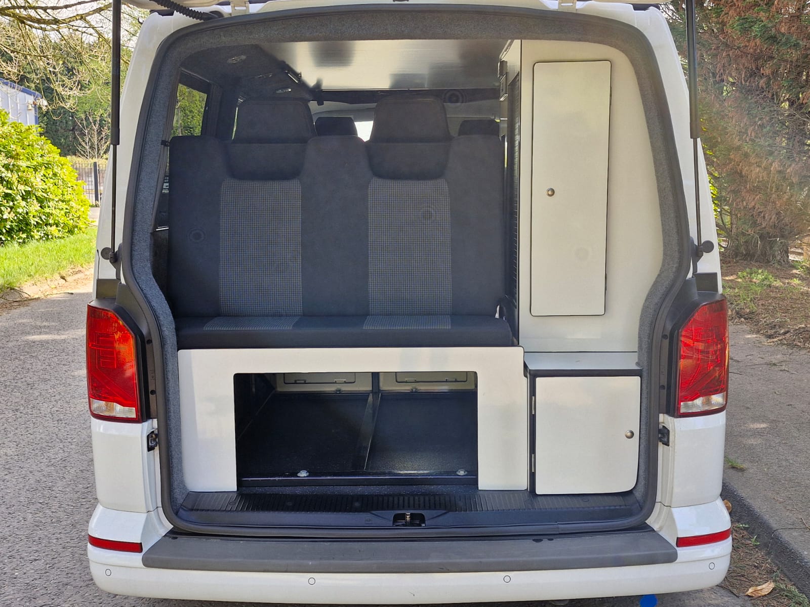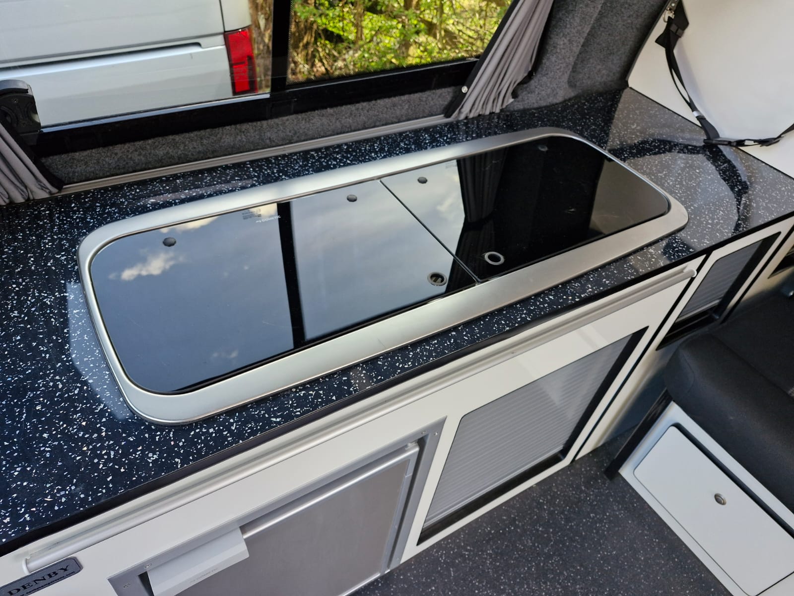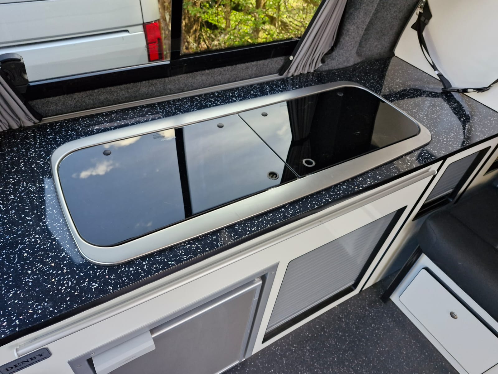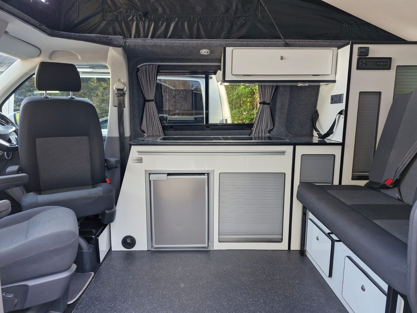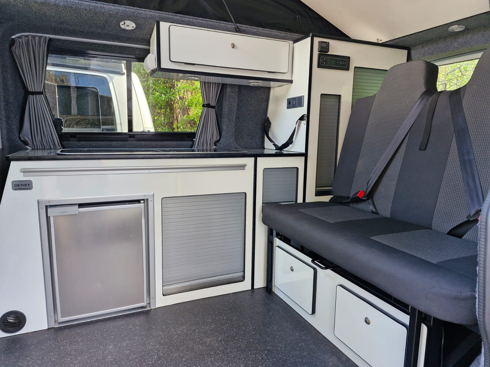 This full professional Denby camper conversion has all the features you’d expect from a quality factory built camper. Perfect for use as a daily vehicle as well as a holiday van. Both comfortable and practical, this van conversion boasts fantastic storage, atmospheric lighting, a rock n roll bed in the end lounge layout, comfortably accommodating 4 berth and 4 travelling seats.