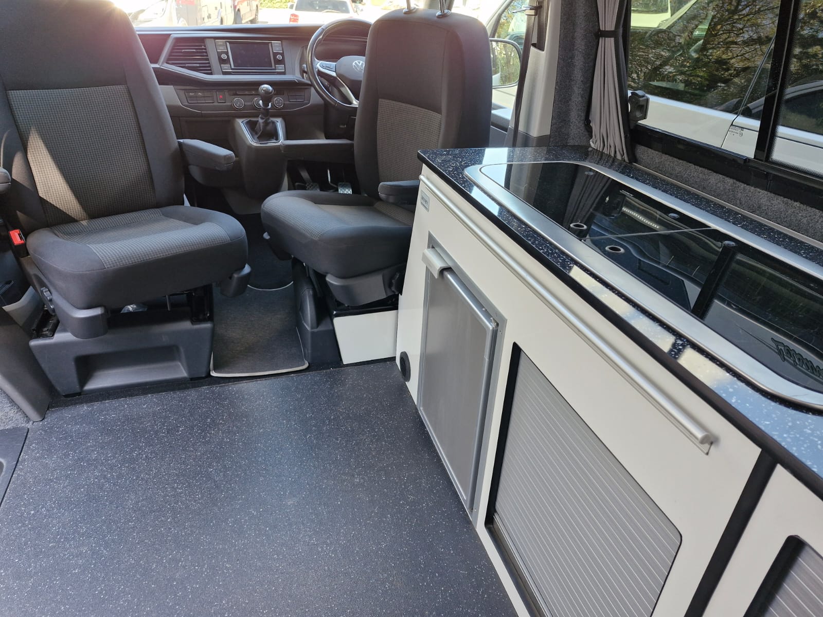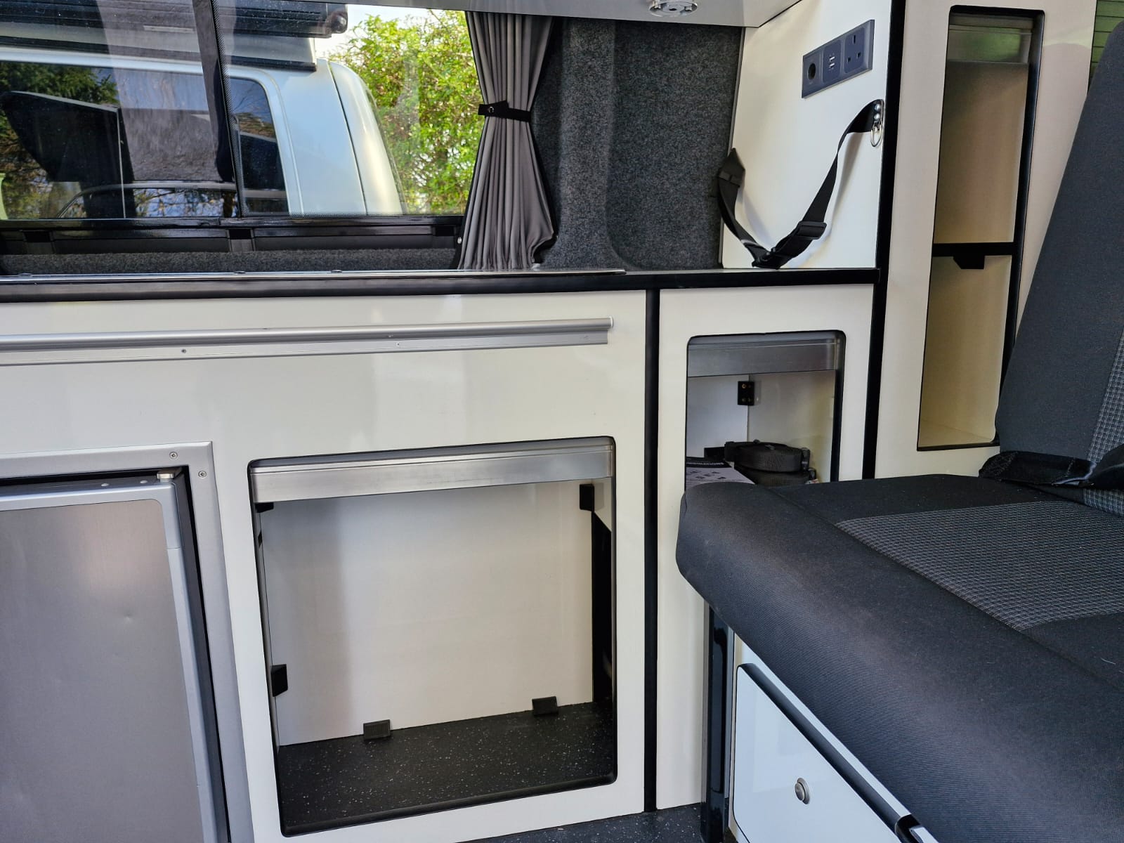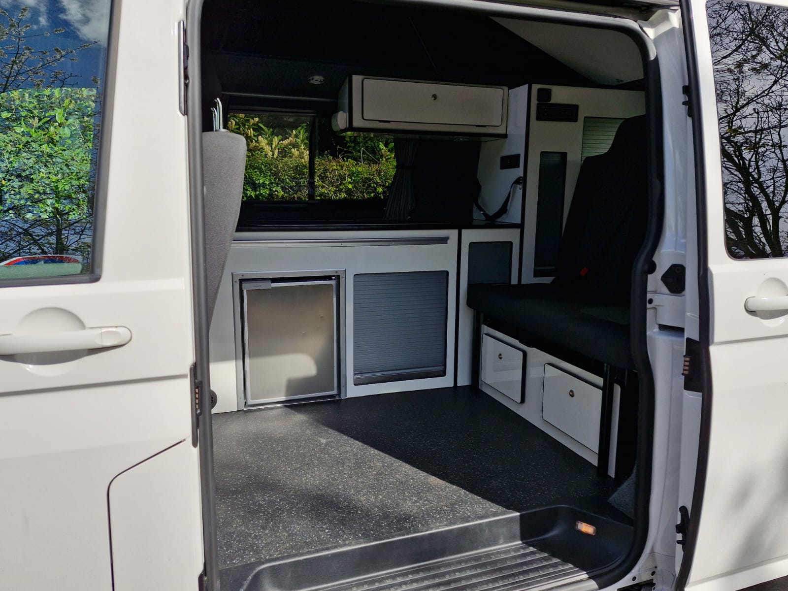 The van has alloy wheels, cab air conditioning, colour coded bumpers and tailgate to the rear where you’ll find the kitchen table stowed neatly.