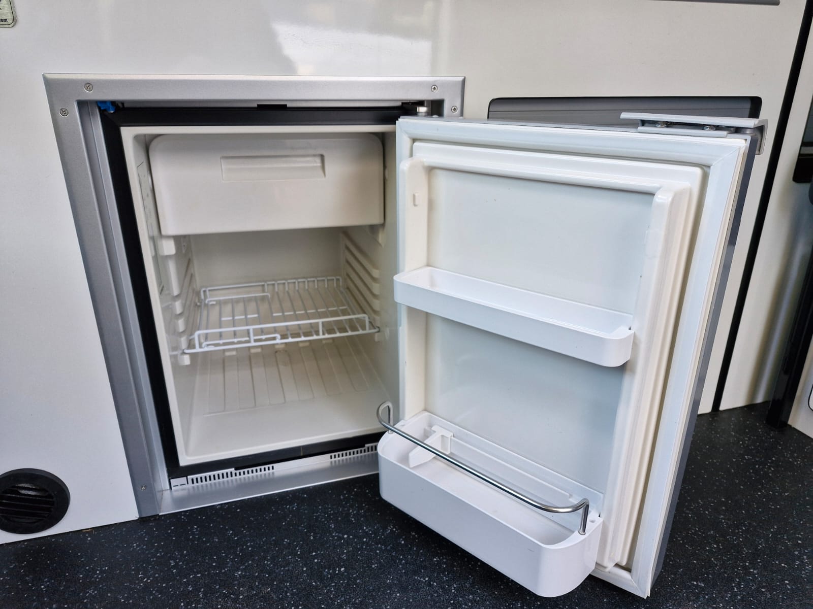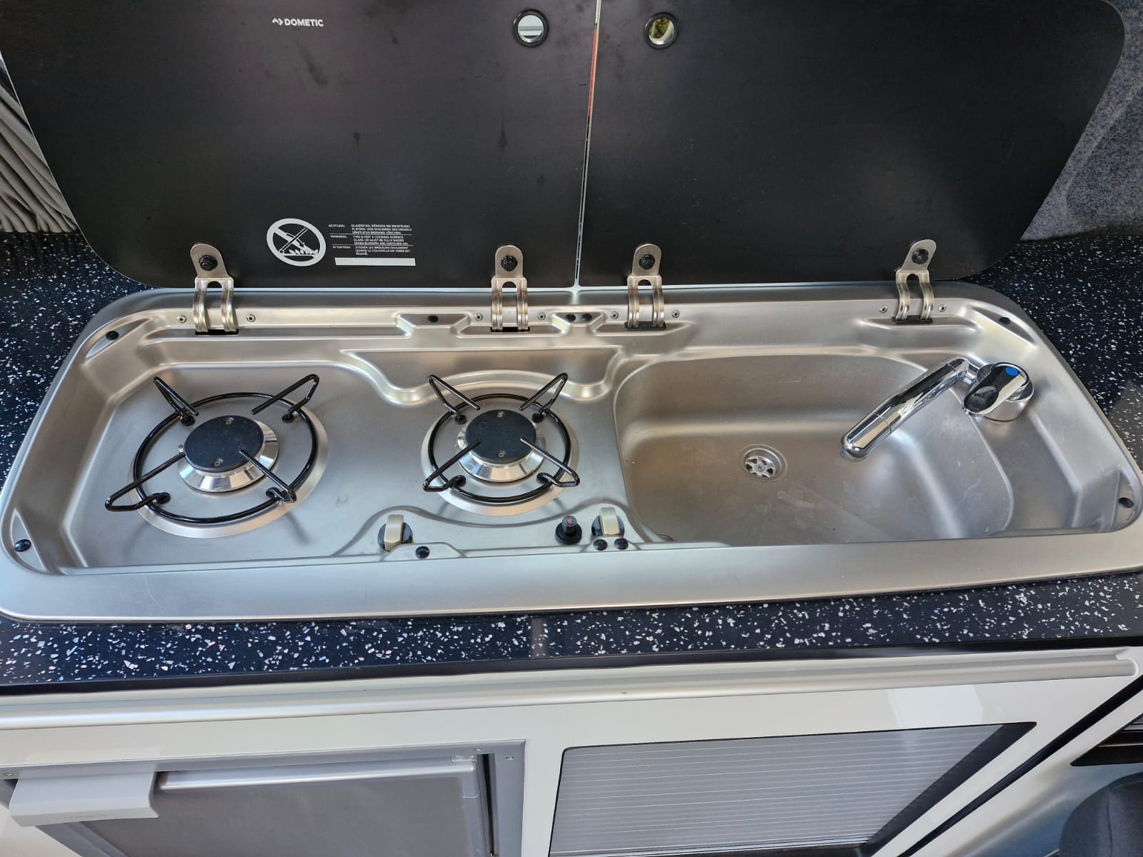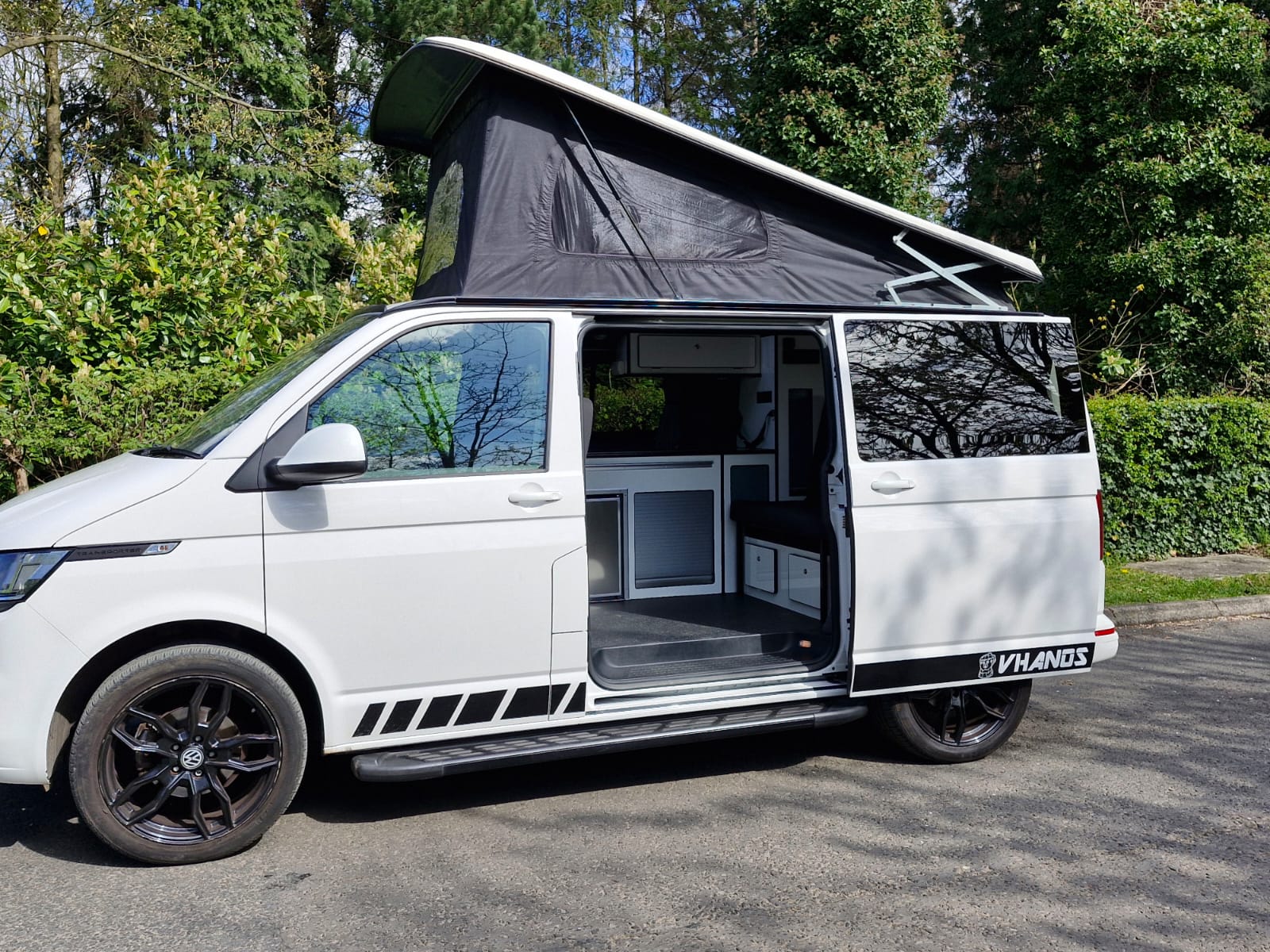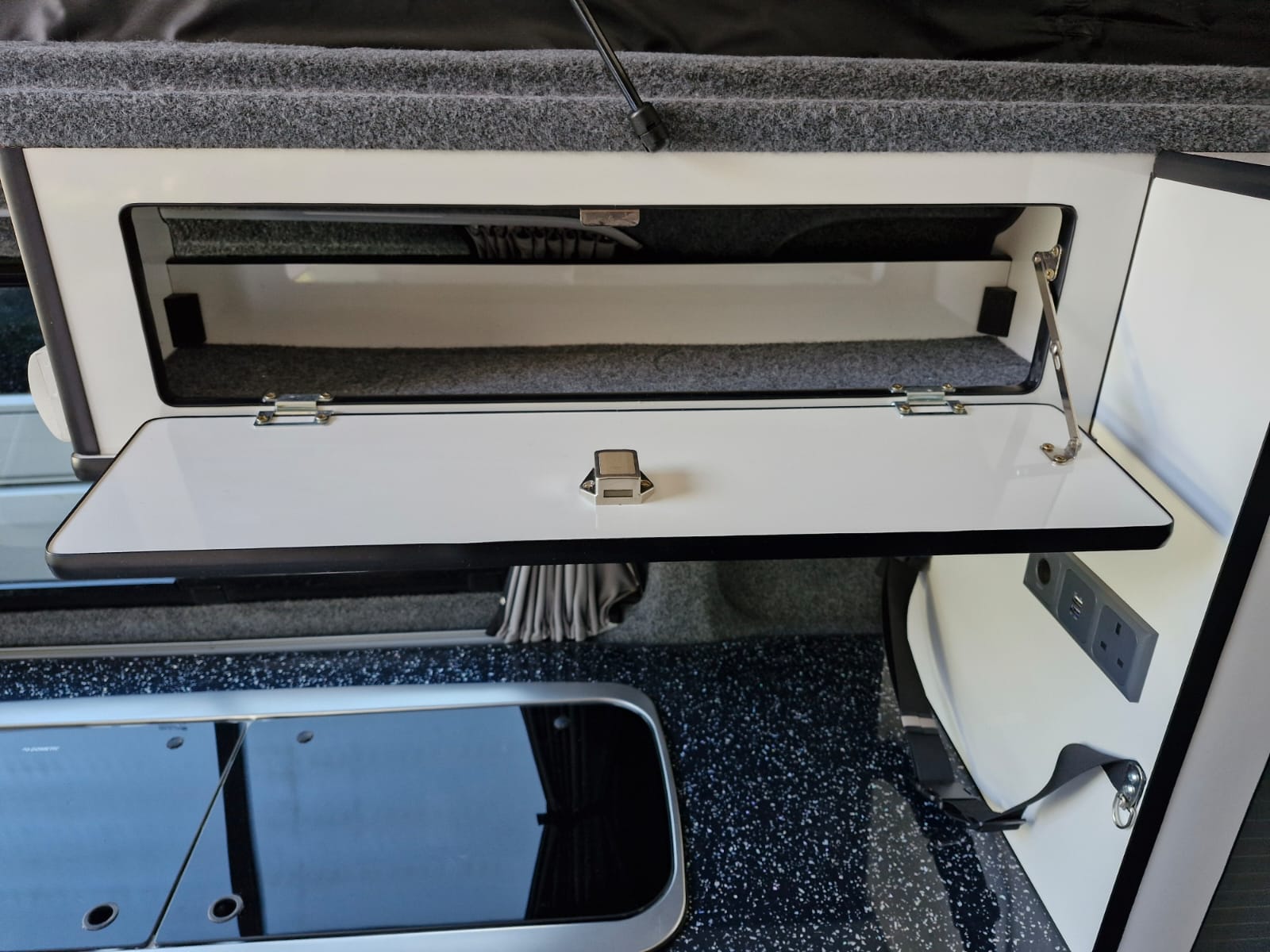 The van has alloy wheels, cab air conditioning, colour coded bumpers and tailgate to the rear where you’ll find the kitchen table stowed neatly.